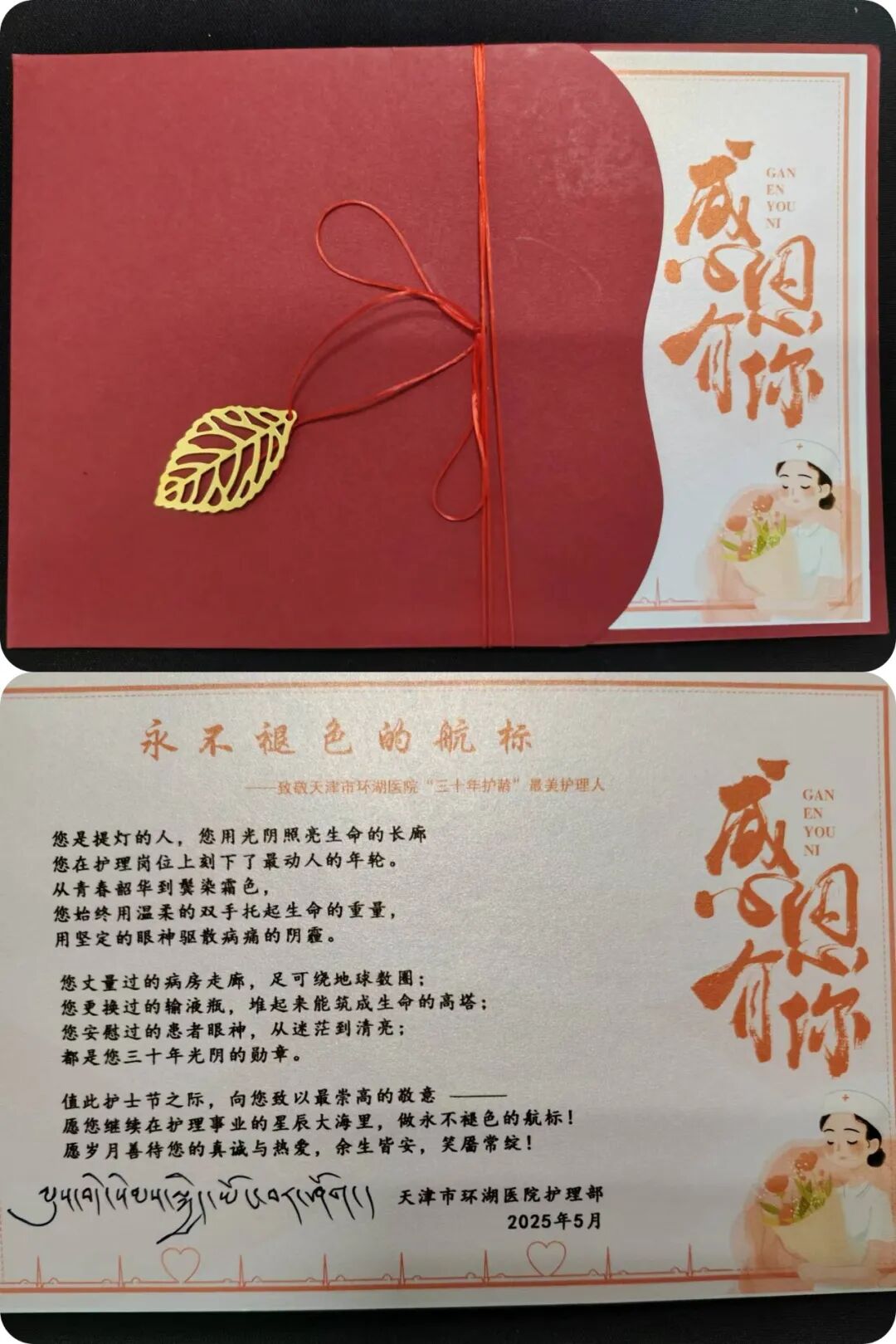 护理部还为护龄超过30年的护理老师们准备了节日贺卡和礼物,传递浓浓关怀。